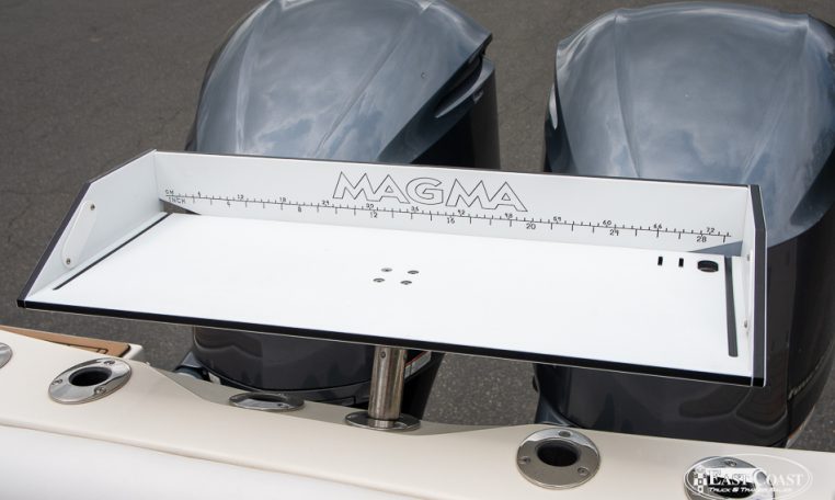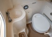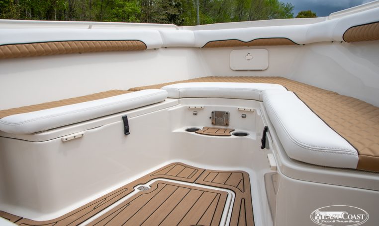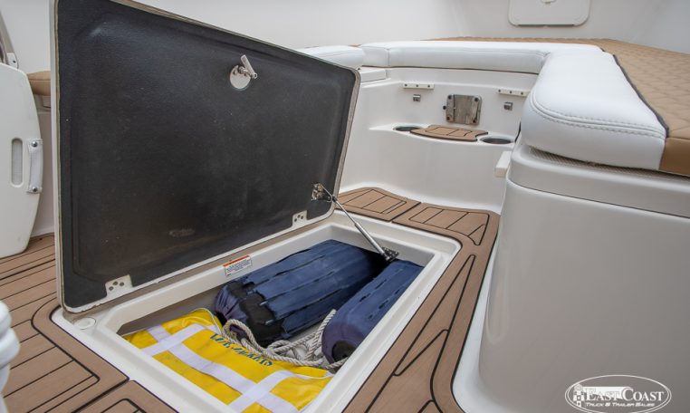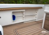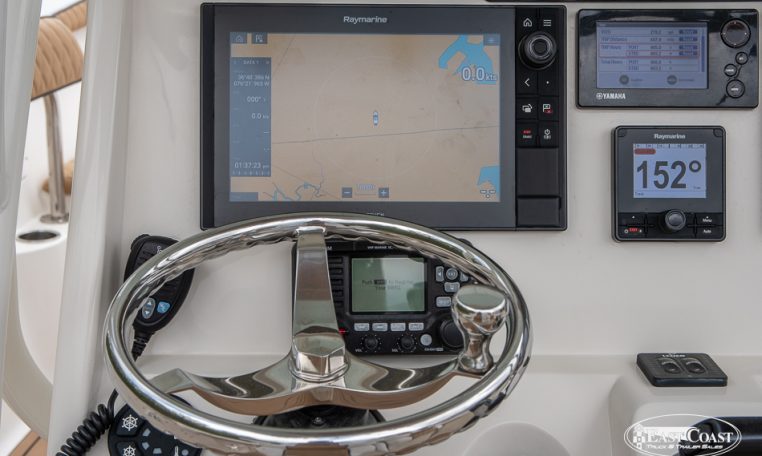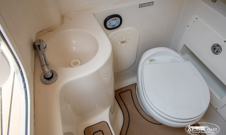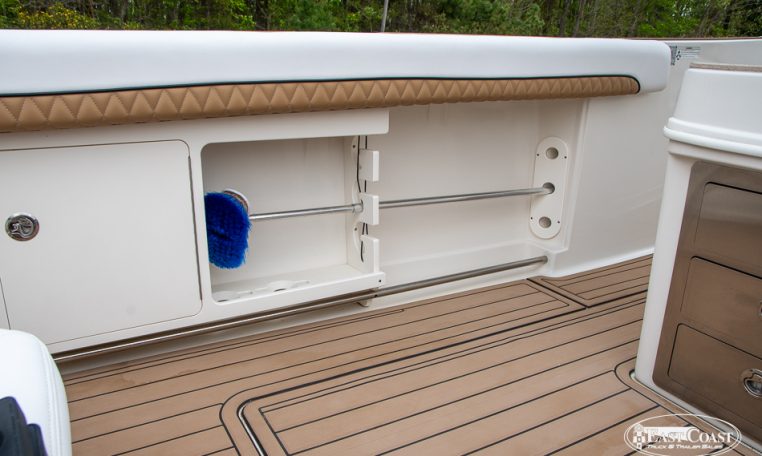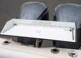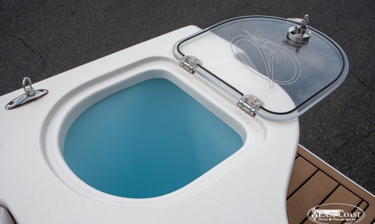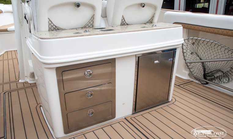 Aft and above of helm seat are cup holders & sink w/ pressure water