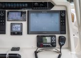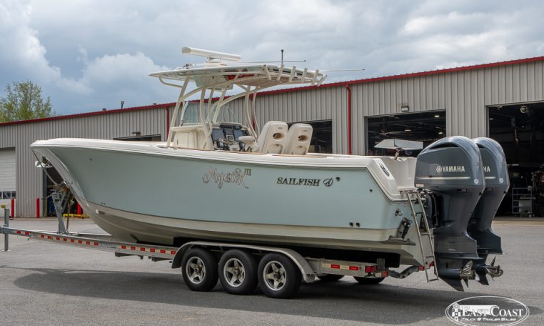This 320CC is a one owner boat that is excellent condition and is price to sell! It features a curved T-top, a new dash facing accommodates larger flush mounted Ray Marine electronics, New stylish cushions and bolsters and much, much more! Sailfish’s design staff has taken input from you the consumer, and with meticulous attention to detail, have created the ultimate offshore fishing platform. The 320CC is built using our variable degree stepped deadrise (VDS) hull design, which offers the softest, driest riding hull in history. The VDS hull, combined with proven 4 stroke power, makes the 320 both responsive and extremely agile for a boat this size. Add in few features like the New Decking, New comfortable cushions, forward-facing backrests, a large, step-down head, a removable bow table, and you have the family fun machine, ideal for an active day on the water and perfect for taking some friend out for a sunset cruise. If you look examine the other brands in this size range, we’re sure that you will agree, the Sailfish 320 is the best of the best, and represents the best value in offshore, family, fishing, fun boats available. This ready to go Sailfish 320CC will not last long and is priced to sell, make an appointment today to see this boat.