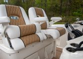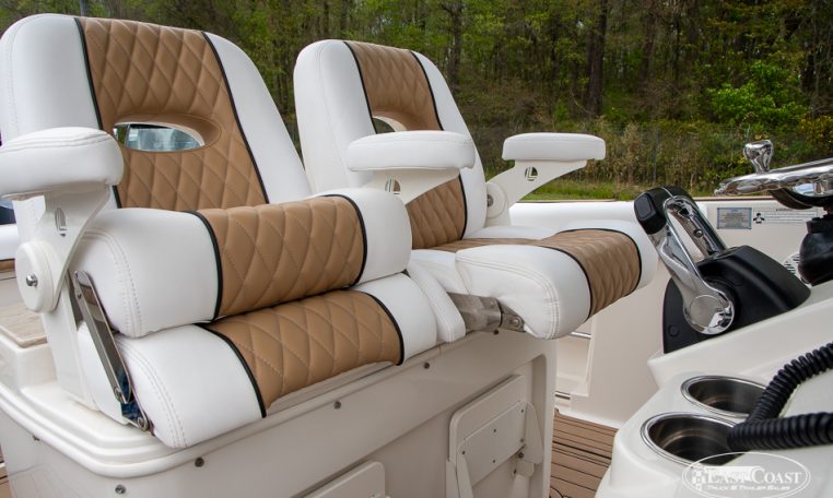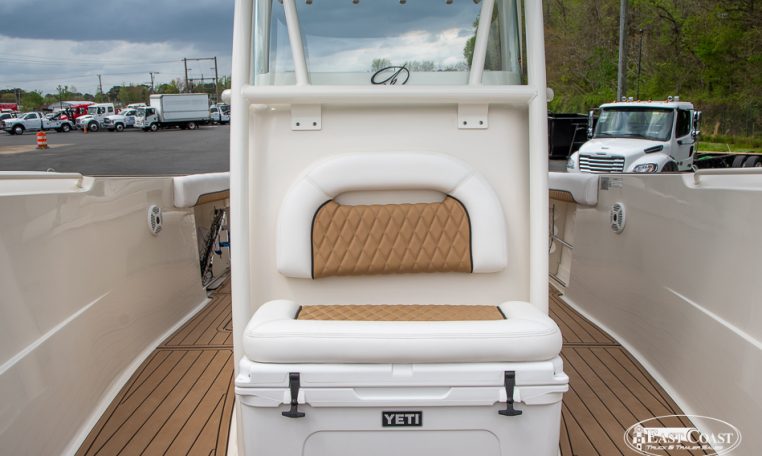 Yeti cooler seat w/ cushion & back rest in front of helm
