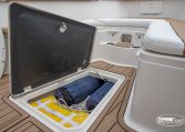 Aft of helm below is Isotherm refrigerator & 3 SS drawers