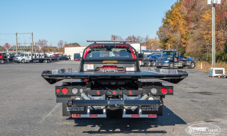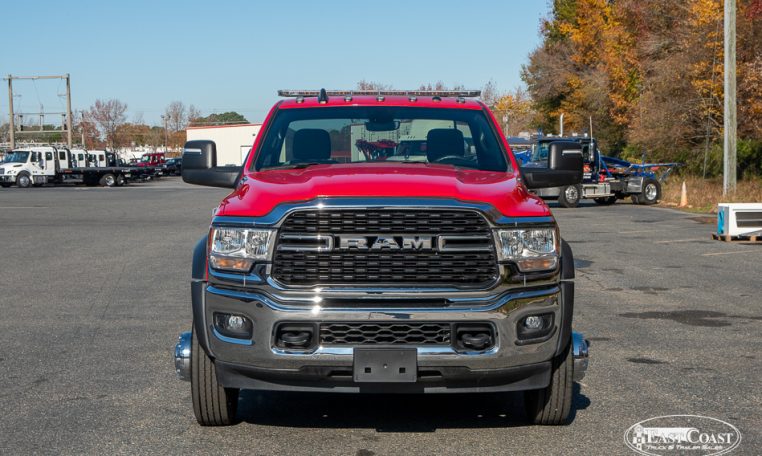This 2024 Flame Red Dodge 5500 with a Jerr-Dan 20×102 rollback deck is equipped with a 6.7L Cummins engine, an Aisin 6 speed automatic transmission, and a 145″ wheelbase.