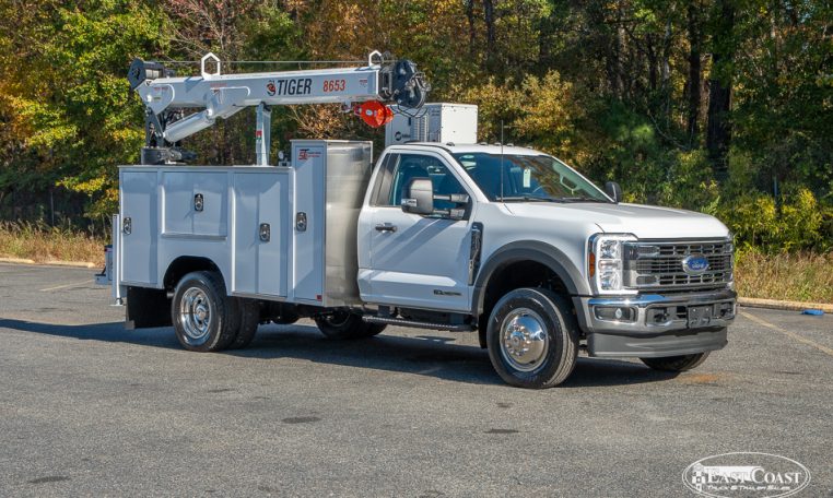 Altogether, this F-600 with STI 2250 body and Tiger 8653 crane offers a versatile, long-reach solution built for job sites that demand both reach and reliability.
