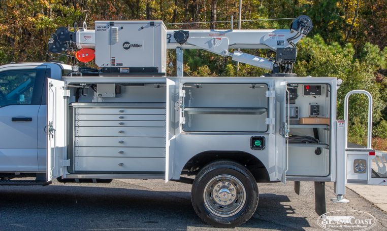 Mounted on this capable platform is the STI 2250, the most popular body in Service Trucks International’s lineup. Purpose-built for 23,000 GVWR chassis, the 11-foot body is designed for everyday durability and organization, with 50-inch high cabinets and a dedicated 60-inch compartment for oxygen and acetylene bottle storage—providing secure, accessible space for the tools you depend on.