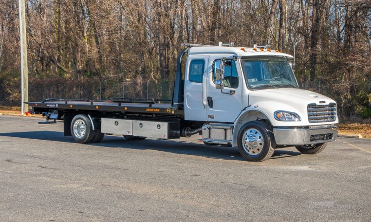This new 2025 Extended Cab Freightliner M2 and Jerr-Dan 22 x 102 SRR6T-LPW rollback is equipped with a Cummins B6.7L Engine and Allison 2200 RDS automatic transmission it boasts more than enough power for the most challenging jobs.