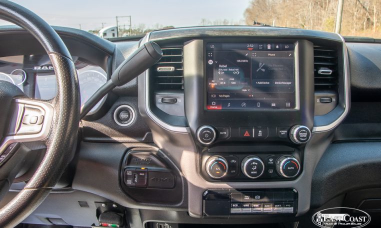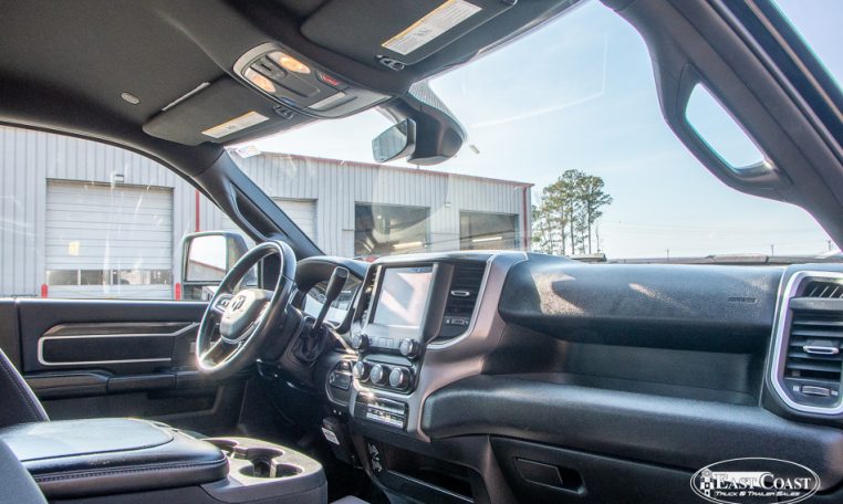This 2024 Black Dodge 5500 4×4 with a Jerr-Dan 20×102 rollback deck is equipped with a 6.7L Cummins engine and an Aisin 6 speed automatic transmission.