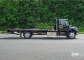 This new 2026 International MV and Jerr-Dan 22×102 SRR6T-LPW in black steel rollback, is equipped with a 250HP Cummins Engine, Allison 2200 RDS Automatic Transmission, 4.63 Rear Ratio, a 224″ Wheelbase, Air Brakes, Power Steering, and AC.