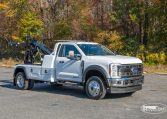 This unit features Jerr-Dan’s 10,000 lb. Side Recovery System with a swiveling boom allowing you to pull from the passenger as well as the driver’s side. The independent flip down claw and pivoting spade feet create a solid platform for recovery on any type of surface. The wireless remote system keeps you out of harms way throughout the job while the adjustable light pylons ensure you’re never working in the dark.