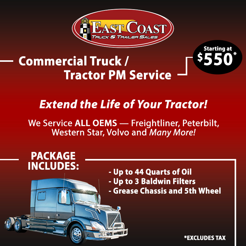 Our detailing department offers trailer wash outs, truck and trailer washes, interior cleaning, and that service includes polishing wheels. East Coast Truck and Trailer Sales is the only trailer wash out facility in Hampton Roads. Come and check out our newly renovated detail bays for first come, first serve truck cleaning.