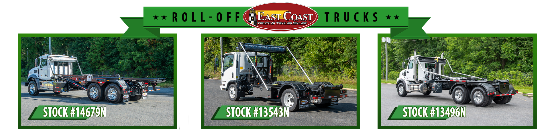 Shop our selection of Roll-Off Trucks for sale on-the-lot and ready to increase your bottom line. Our Roll-Off Trucks are equipped with legendary GalFab hoists built for durability these units are designed to tackle debris, refuse, disaster clean up, accident clean up, construction and more. East Coast Truck and Trailer Sales, Inc carries a full line of light, medium and heavy duty Roll-Off trucks, ranging from a 20,000 to 75,000 pound capacity. Our full service department offers parts & service to enhance and customize your tow operation business needs. Find our full selection of Roll Off trucks on-the-lot and conveniently located in Portsmouth, Virginia location near Victory Crossing on Victory Boulevard, zip code 23701. Our inventory is updated daily so check back regularly. Subscribe to our YouTube channel to see these units up close from the comfort of your seat and leave us your email address to be the first to shop new arrivals. Contact one of our industry experts to learn more.